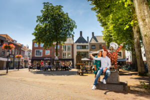 An vielen Orten der Region dürfen Gäste mit Korb unterm Arm durch die Baumreihen spazieren. Selbstgepflückt schmeckt es ja meist noch ein bisschen besser. Und gibt es ein schöneres Mitbringsel aus der Betuwe als die eigene Ernte? Höchstens ein Foto mit Flipje, dem Maskottchen der kleinen Hansestadt Tiel. Ursprünglich von der ortsansässigen Marmeladenfabrik „De Betuwe“ als Comic- und Werbefigur entworfen, hat Flipje längst Kultstatus und einen festen Platz auf dem Markt im Stadtzentrum. Außerdem nimmt er im September alljährlich am großen Obstkorso teil, der mit aufwendig geschmückten Wagen durch die Straßen zieht.